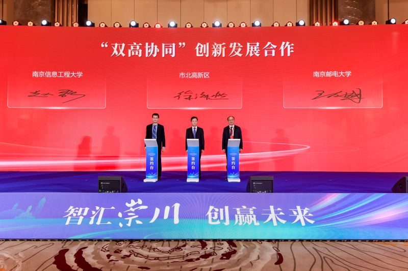 大会现场,王友国副校长与崇川区委副书记、市北高新区党工委书记徐海燕共同签署“双高协同”创新发展合作项目。